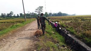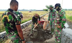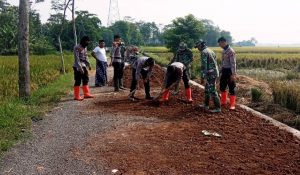 Polisi pun Ikut Kerja Keras di Penimbunan Lubang Sekitar Talud TMMD