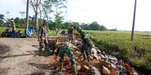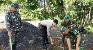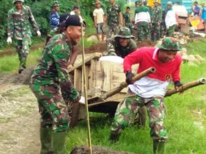 Aparat Gabungan Terjun di Lokasi Pembangunan Jalan TMMD