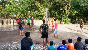 Jalin Keakraban, Satgas TMMD Main Voli Dengan Kaum Muda Pantirejo