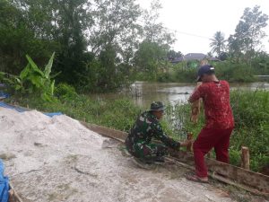 Dibantu Warga, Satgas Pasang Kayu Penahan Tumpukan Pasir