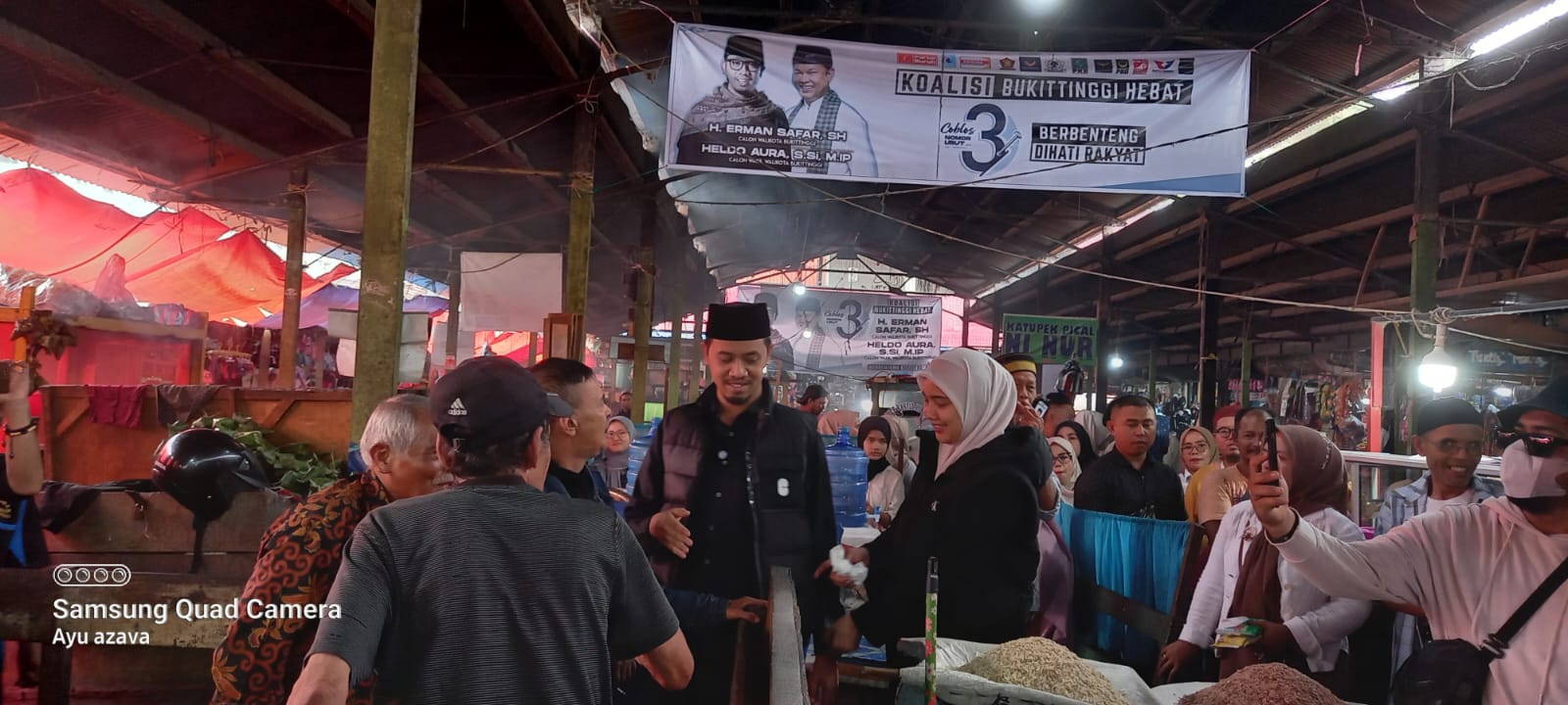 Pada kegiatan tatap muka yang di adakan oleh Erman safar di tegah derasnya hujan, namun tidak menyurutkan niat dari Cawako nomor urut 3 tersebut untuk bertemu dengan para pendukungnya, khusus pedagang pasar bawah, pasar lereng dan pasar atas Bukittinggi.