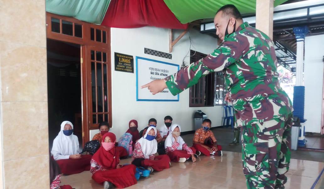 Karanganyar-Kita sebagai bangsa yang besar dan sebagi bangsa yang disegani oleh bangsa lain, harus mampu menjaga keutuhan NKRI, hal itu harus diterapkan lewat pendidkan sejak dini kepada anak. TMMD Reguler Kodim 0727/ Karanganyar didalamnya termasuk wawasan kebangsaan. apabila itu diterapkan akan menghasiklkan produk generasi yang Unggul dan mandiri untuk kedaulatan NKRI sekaligus menjadi generasi yang tangguh,”Jelas Serka Fajar