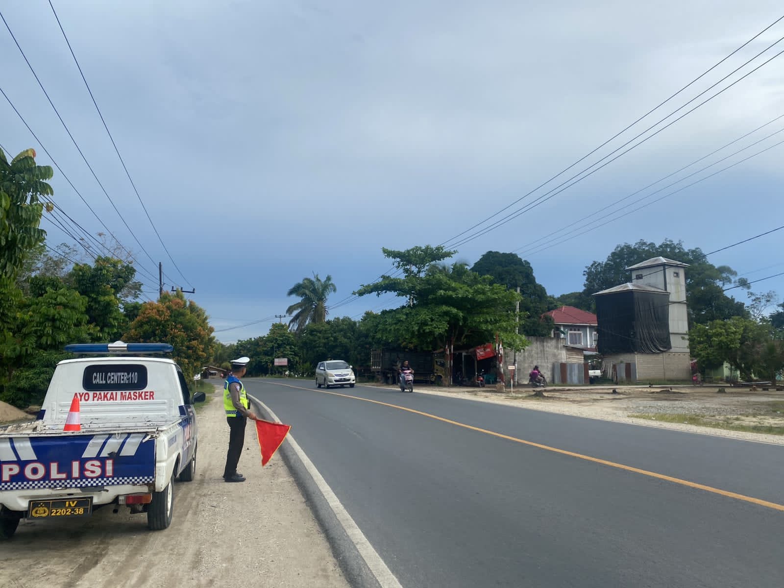 Pengaturan lalu lintas ini dilaksanakan oleh Bripda Seto Lelono dan Bripda Jodi Afrianto.
