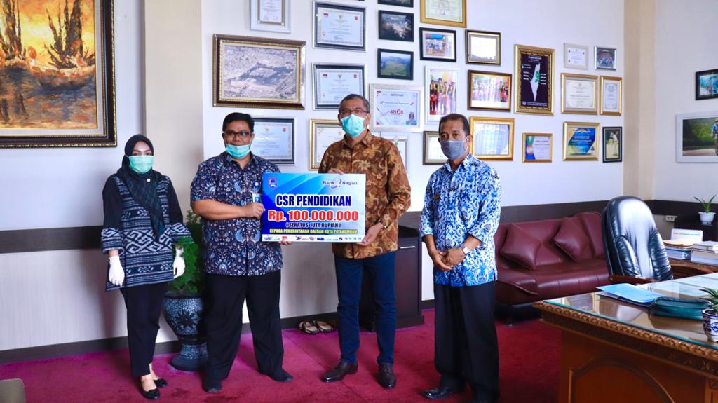 CSR tersebut, diserahkan langsung oleh Kepala Bank Nagari Hafid Dauli kepada Wali Kota Riza Falepi yang didampingi Kepala Dinas Pendidikan AH. Agustion.