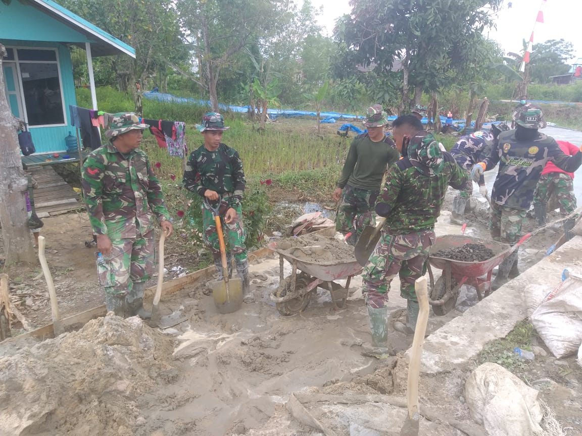 Kekompakan personel Satgas TMMD terlihat saat mereka bergotong royong mengecor jalan usaha tani yang harus segera diselesaikan sesuai target waktu yang sudah ditentukan komando atas. Untuk mempercepat pengecoran, setiap hari personel Satgas TMMD secara bergantian melansir material cor dengan menggunakan seadanya.