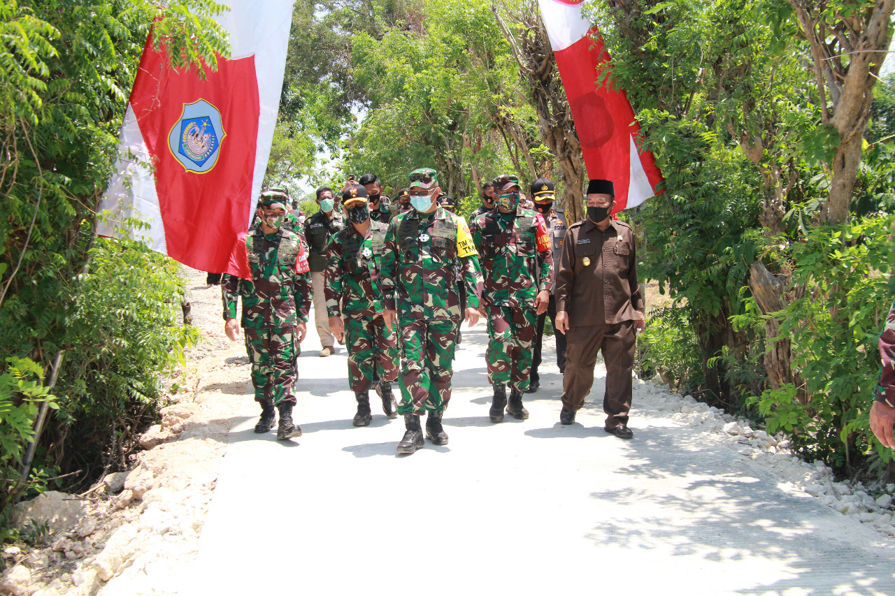 Lamongan- Ngatmuli (40) warga Desa Tebluru, Kecamatan Solokuro Kabupaten Lamongan, tersenyum lebar usai melintas di jalan cor di Desa Tebluru walaupun belum sempurna semuanya. Pasalnya, jalan tersebut tengah dikerjakan oleh anggota Kodim 0812/Lamongan dalam program TMMD Reguler ke-109