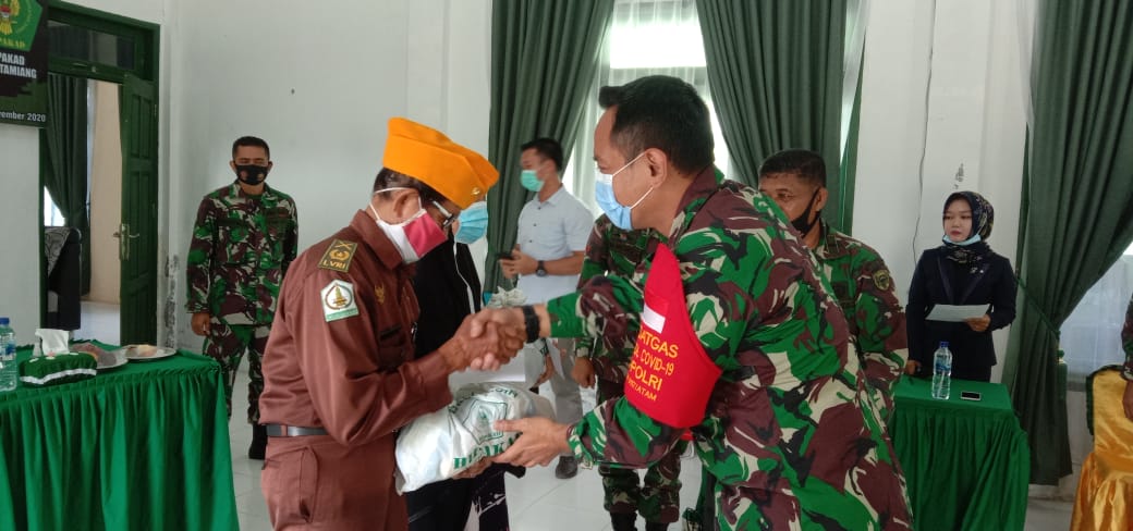 Organisasi masyarakat (Ormas) Himpunan putra- putri keluarga angkatan darat (HIPAKAD) Bersama KODIM 0117 Aceh Tamiang menbagikan paket sembako kepada Warakawuri dan legiun veteran Jumat,(20/11/2020)