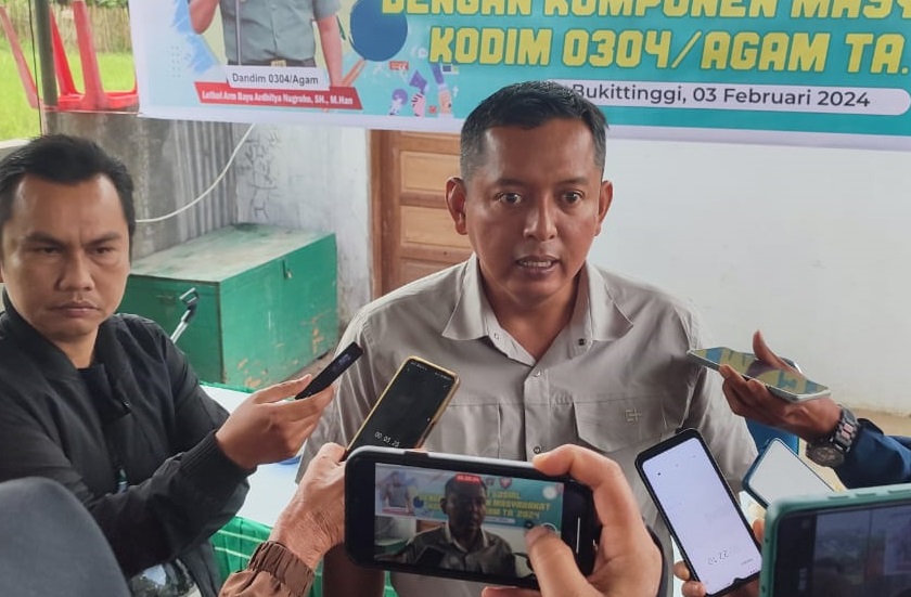 News Banter, com- Dandim 0304/Agam Letkol Arm Bayu Adhitya Nugroho,SH. m. Han adakan komunikasi dengan insan media Bukittinggi di lapangan Tembak Kodim 0304/Agam, Sabtu (03/02/24)