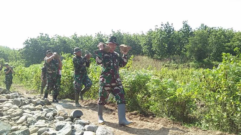 Seperti halnya Dansatgas, Kepala Staf Kodim (Kasdim), Mayor Kavaleri Hariyono juga melakukan hal sama jika berada di lokasi. Hal ini dilakukan secara manual mengingat Jembatan Limpas yang baru sedang finishing berupa pengacian (panjang 20 meter dan lebar 3,5 meter) belum diperbolehkan dilintasi truk pengangkut material sampai menunggu kering total dan diresmikan (27/3) nanti saat upacara penutupan TMMD.