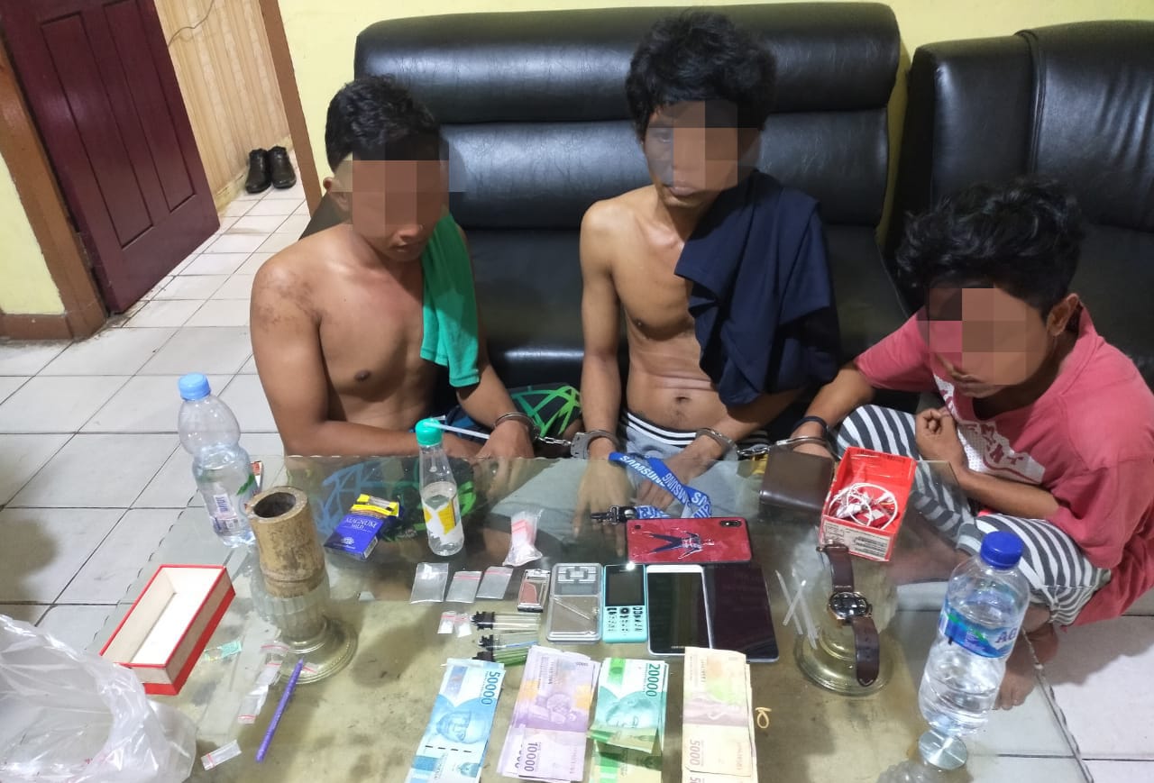 SIAK HULU,newshanter.com – Unit Reskrim Polsek Siak Hulu amankan 3 pria yang diduga sebagai pengedar narkotika jenis shabu, ketiganya diamankan pada Kamis dinihari (12/11/2020 di Gang Masjid Nurul Hijrah jalan Kubang Raya Desa Kubang Jaya. Siak Hulu.