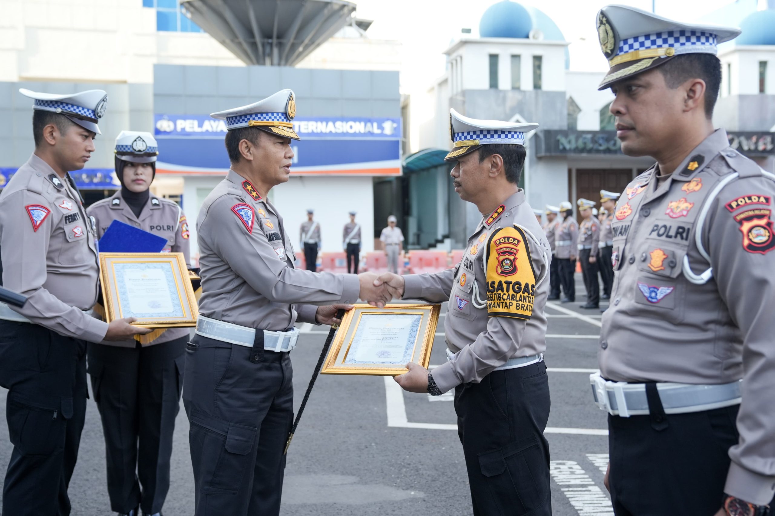 Penghargaan diberikan kepada personel Ditlantas Polda Sumatera Selatan diantaranya Dirlantas Polda Sumsel Kombes Pol M. Pratama Adhyasastra SIK,MH, Kasubdit Gakkum Ditlantas Polda Sumsel Kompol Irwan Andeta dan Kasi Laka Subdit Gakkum Ditlantas Polda Sumsel Kompol Putu Eka Dhenda.