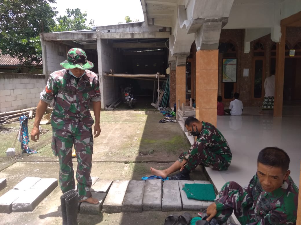 Di tengah-tengah kegiatan TMMD, Giat anggota satgas TMMD ke-110 Kodim 0813/Bojonegoro Serma Saifuddin dan rekan-rekan melaksanakan ibadah Sholat Jum’at.