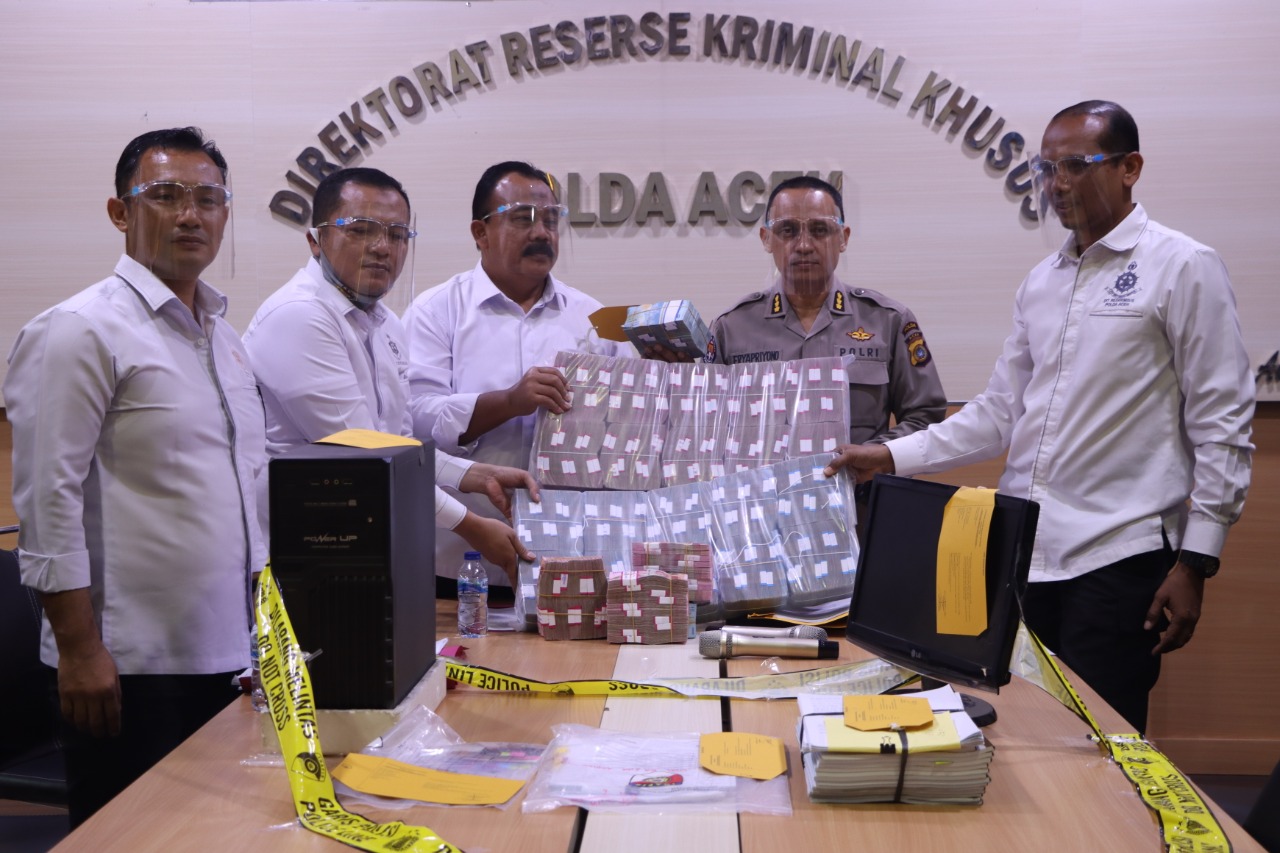 Penahanan tersangka ini disampaikan Dirrreskrimsus Polda Aceh yang didampingi Kabid Humas serta sejumlah Perwira Polda Aceh, dalam konferensi pers di aula Ditreskrimsus Polda Aceh, Rabu (16/09/2020).