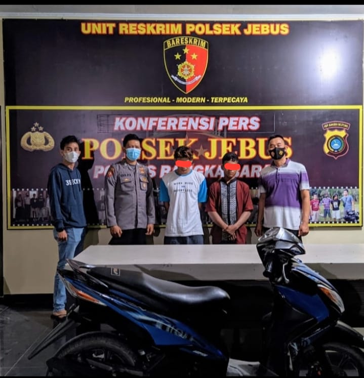JEBUS — Dua pemuda tanggung dibekuk Satreskrim Polsek Jebus menyusul laporan kasus pencurian kendaraan bermotor milik pelapor Hendri Susanto alias Ayung sekitar Juli 2020 lalu. DP (19) dan HI (13), kedua tersangka berhasil ditangkap di lokasi yang berbeda.