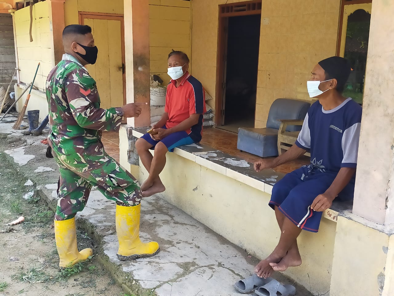 “Saya menghimbau dan memberikan masker kepada warga desa Ngrancang untuk tetap melakukan protokol kesehatan,” ujar Sertu Jufri