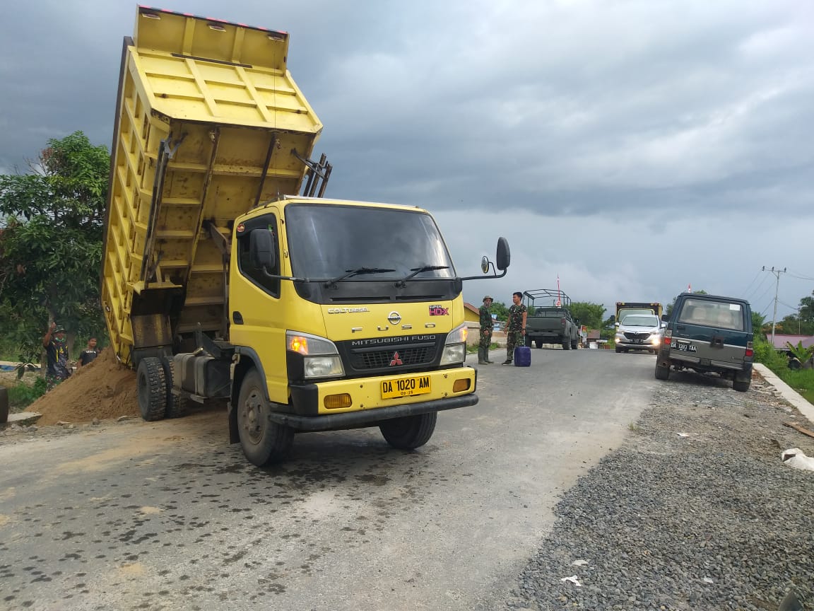 Kapuas,- Sejumlah material berupa pasir terus di gelontorkan ke sejumlah titik sasaran TMMD Reguler Ke- 110 Kodim 1011/KLK, Desa Saka Lagun, Kecematan Pulau Petak, Kabupaten Kapuas, Minggu (28/3/2021).