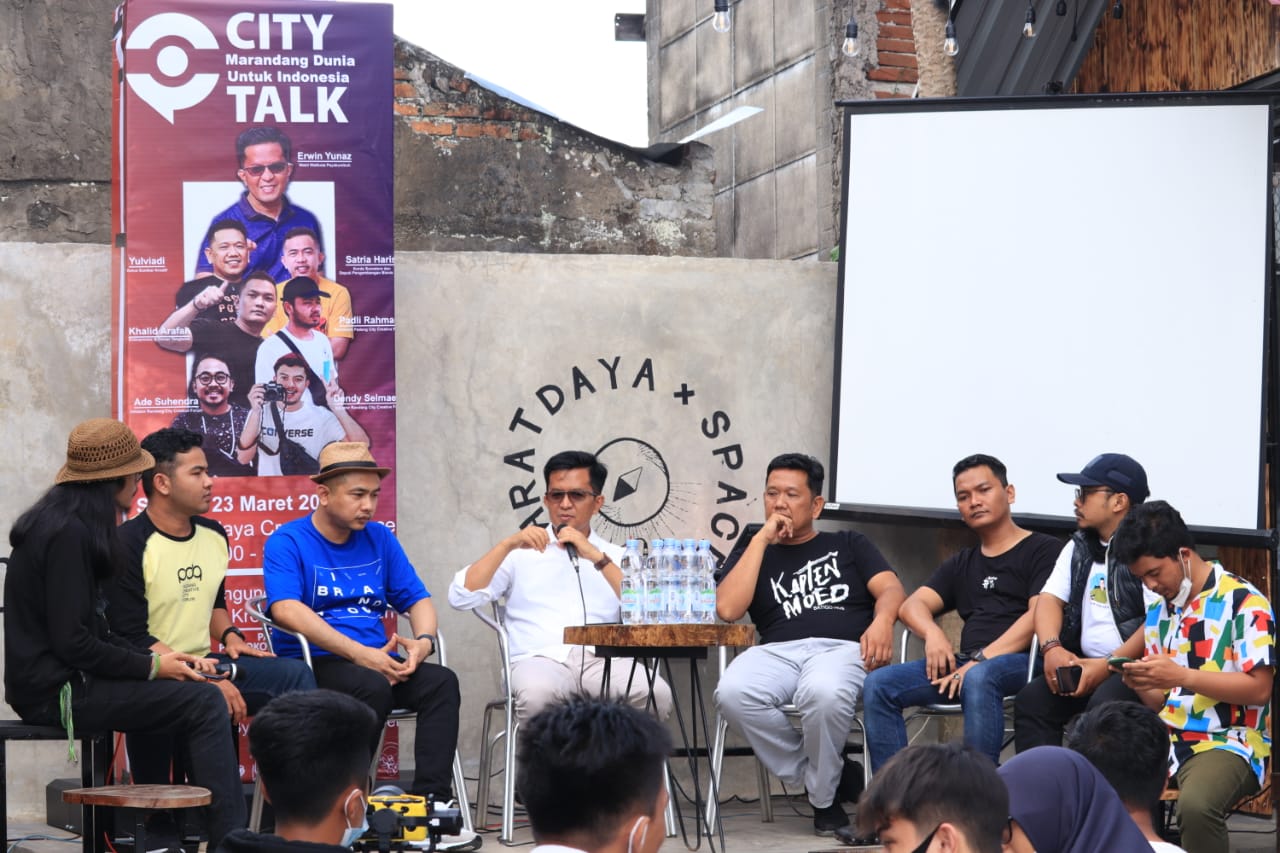 Payakumbuh, NewsHunter.com — Wakil Walikota Payakumbuh Erwin Yunaz menghadiri acara City Talk Marandang Dunia Untuk Indonesia yang dilaksanakan oleh Randang City Creative Forum di Cafe Barat Daya, Selasa(23/3) sore.