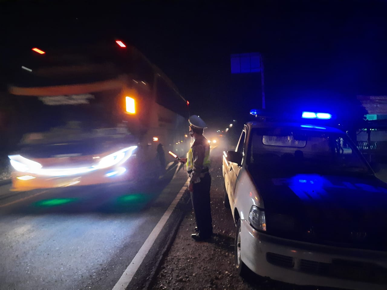PELALAWAN, NEWSHANTER.COM – Polisi Lantas (Polantas) Sektor Pangkalan Kuras Resort Pelalawan kembali melakukan patroli roda empat (R4) di wilayah hukumnya. Kali ini di Jalan Lintas Timur KM 108 tepatnya desa Dundangan Kecamatan Pangkalan Kuras, Pelalawan, Riau, Selasa (1/12/2020) Malam.