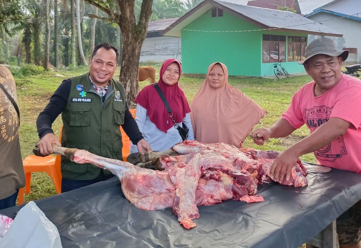 PELALAWAN, NEWSHANTER.COM – Ketua DPRD Kabupaten Pelalawan, Baharuddin SH, menghadiri launching perdana pemotongan sapi Badan Usaha Milik Desa (Bumdesa) Sidomakmur di desa Sido Mukti, Kecamatan Pangkalan Kuras Kabupaten Pelalawan Riau, Selasa (31/8/2021).