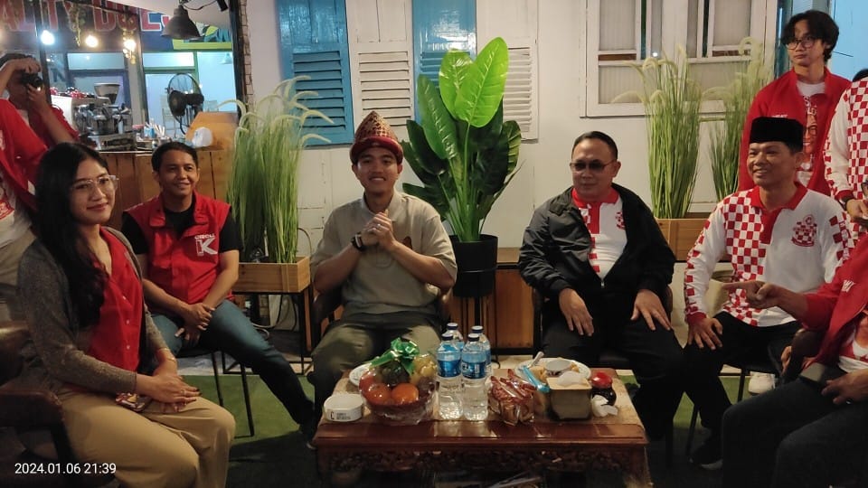Palembang, newshanter.com – Relawan Prabowo-Gibran provinsi Sumsel menggelar silaturahmi relawan bersama mas bro Kaesang Pangarep yang digelar di Guns Cafe, Palembang, Sabtu (7/1/2024).