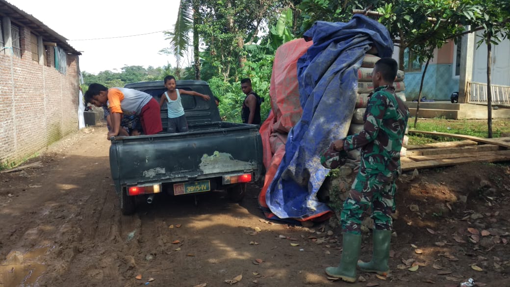 Kudus- Suasana gembira nampak terpancar dari raut muka anak-anak Dukuh Talun, walaupun hanya sekedar ikut naik mobil tentara yang bolak balik mengangkut semen untuk di bawa ke lokasi TMMD Reg 107 ,jumat 20/03/20.
