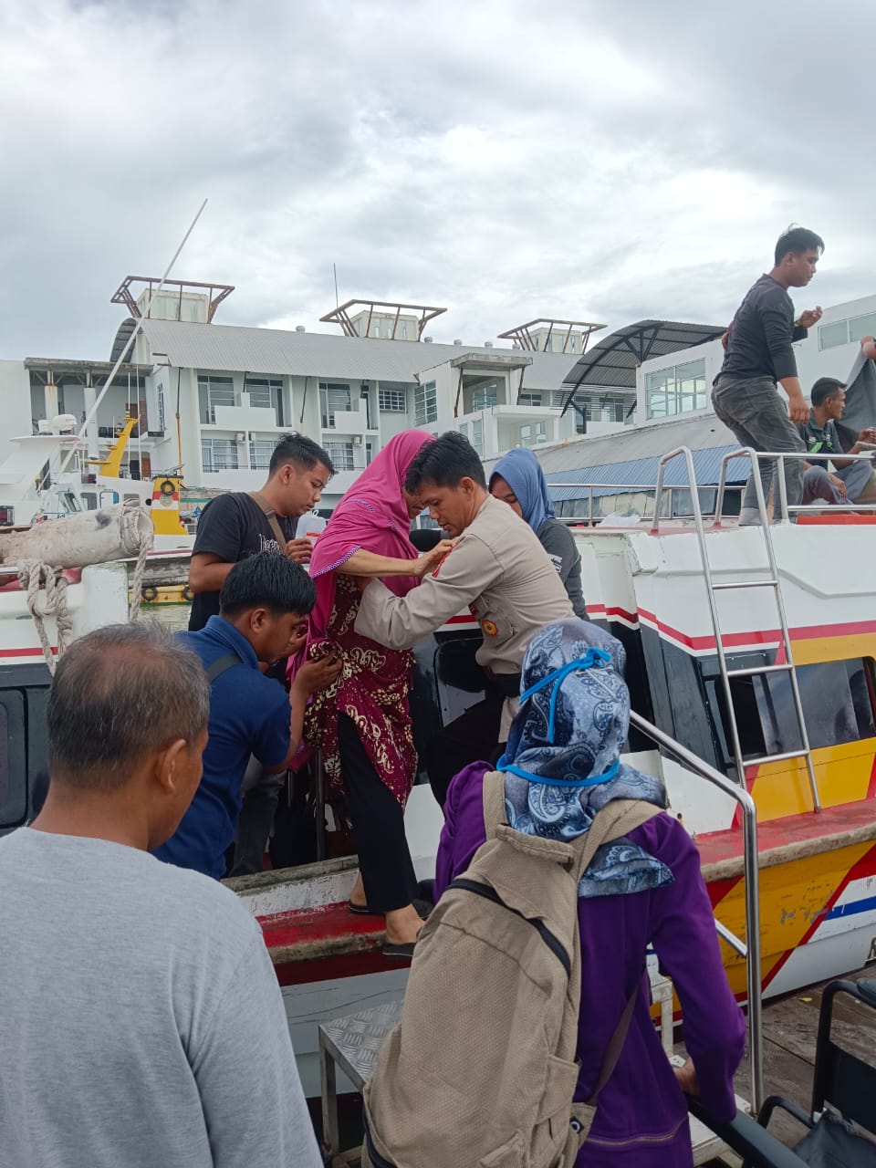 “Melaksanakan kegiatan, membantu seorang ibu yang sakit disela-sela kegiatan Cooling System pemilu tahun 2024 di Pelabuhan Teluk Dalam Kecamatan Kuala Kampar,” ujar Kapolres Pelalawan AKBP Suwinto, S.H., S.I.K melalui Kapolsek Kuala Kampar AKP Rhino, S.H.