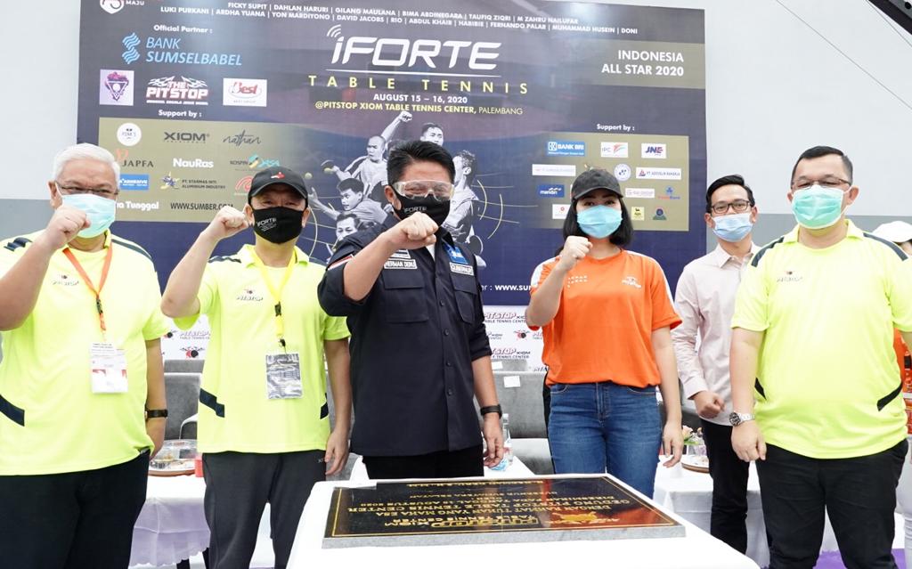 Palembang,Newshanter.com – Gubernur Sumsel H Herman Deru meresmikan GOR Pitstop Xiom Table Tennis Center dan pembukaan kejuaraan tennis meja (Iforte Table Tennis Indonesia All Star 2020 yang diselenggarakan pada 15-16 Agustus 2020 (Pitstop Table Tennis Center) di Jl Purwosari Raya, Lr Purwosari 6 Palembang, Kelurahan Bukit Sangkal, Kec. Kalidoni, Minggu, (16/08/2020).