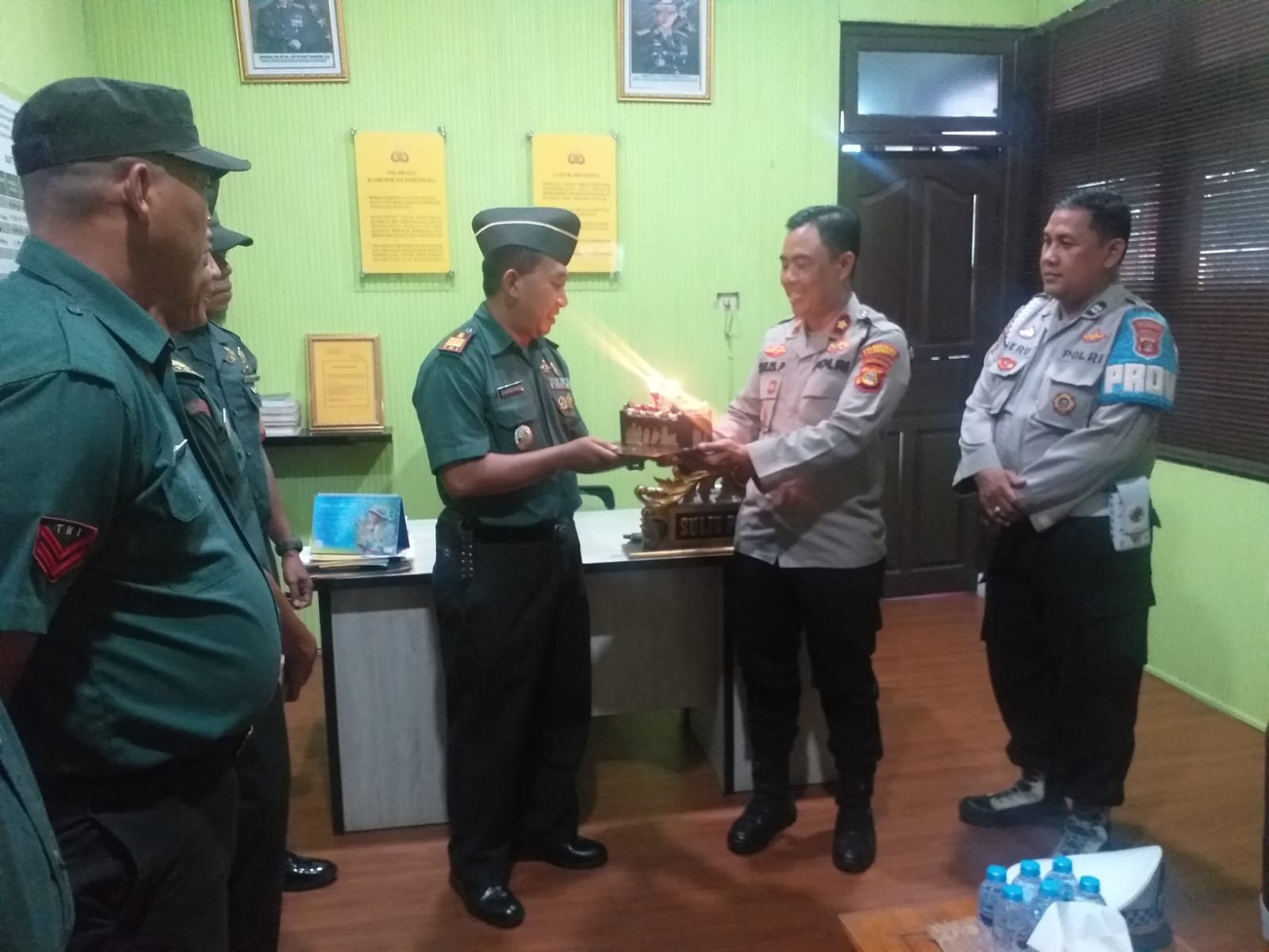 Palembang, newshanter.com – Komandan Koramil bersama anggota Koramil 418-08/Ssko mendatangi Polsek Sako di jalan Borang Kel Sako Kec Sako untuk memberikan surprise dan ucapan selamat HUT Bhayangkara ke-77 tahun 2023, Senin (03/07/2023).