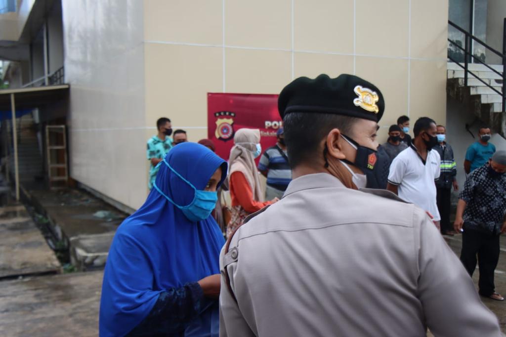 Direktur Samapta (Dirsamapta) Polda Aceh Kombes Pol. Misbahul Munauwar, SH, mewakili alumni Akpol 1991 yang berdinas di Aceh membagikan bantuan sosial (Bansos) berupa sembako kepada masyarakat di Pasar Lambaro, Sabtu (31/07/2021).