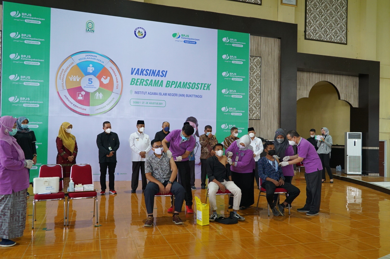 Deputi Direktur BPJS Wilayah Sumbar Riau dan Kepulauan Riau Pepen S. Almas menyebutkan, vaksinasi di IAIN Bukittinggi merupakan program pertama yang dilakukan di wilayah Sumatera Barat, Riau serta Kepulauan Riau dan akan dilanjutkan nantinya dengan program dan penambahan vaksin.