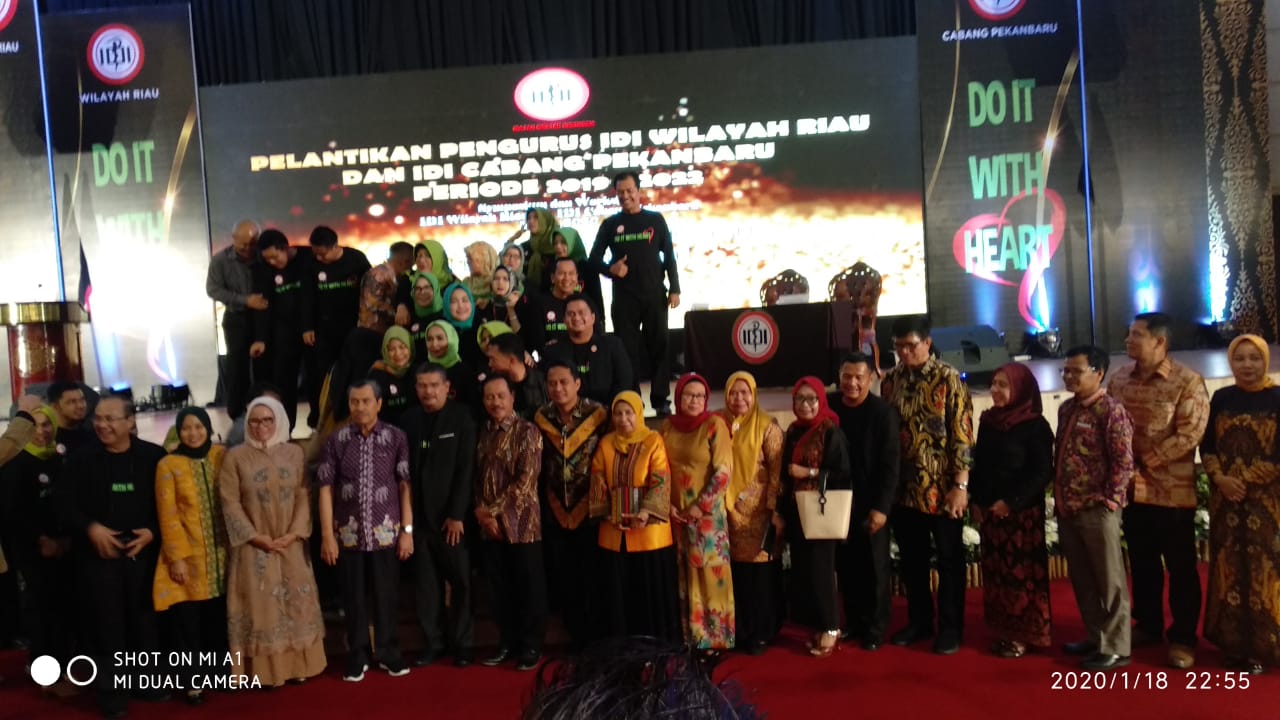 Pelantikan kepengurusan Ikatan Dokter Indonesia ( IDI) wilayah Riau dan ikatan dokter Indonesia ( IDI) cabang kota Pekanbaru untuk periode 2019-2022, Resmi di Lantik, Sabtu (18/1/2020).