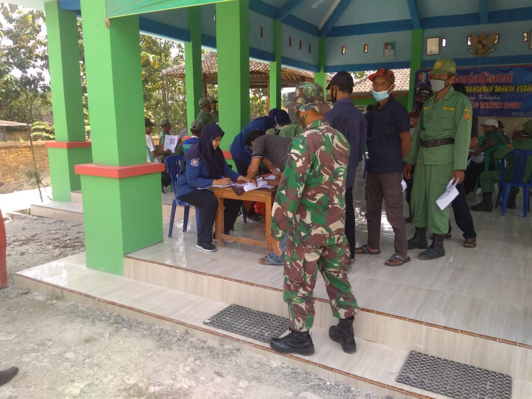 “Kami menertibkan antrian daftar hadir anggota Linmas dan masyarakat,” ucap Serda Sutriyono, Minggu (21/3/2021).