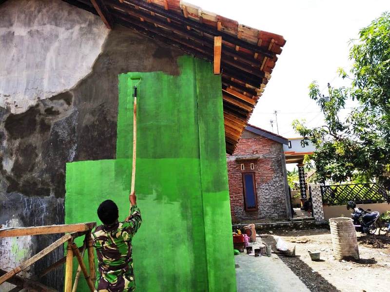 Rumah berukuran 5 x 7 meter ini juga diwarnai anggota Satgas TMMD Reguler 107 Kodim 0710 Pekalongan, dengan warna kombinasi hijau tua dan muda, yang merupakan warna khas bangunan TNI di setiap gelaran rehab RTLH baik di TMMD Reguler maupun TMMD Sengkuyung.