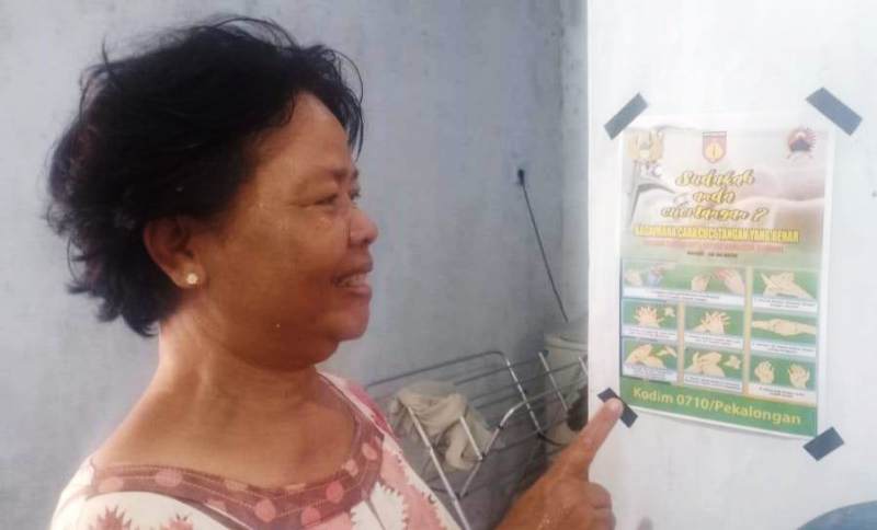 Salah satunya adalah di rumah Suramto (64), pensiunan guru asal Dukuh Sutosari RT. 01 RW. 04, Pantirejo. Nampak Suminah (59), istri Suramto, menunjukkannya kepada anggota Penerangan Kodim Pekalongan, Serda Daryono. Sabtu (18/4/2020).