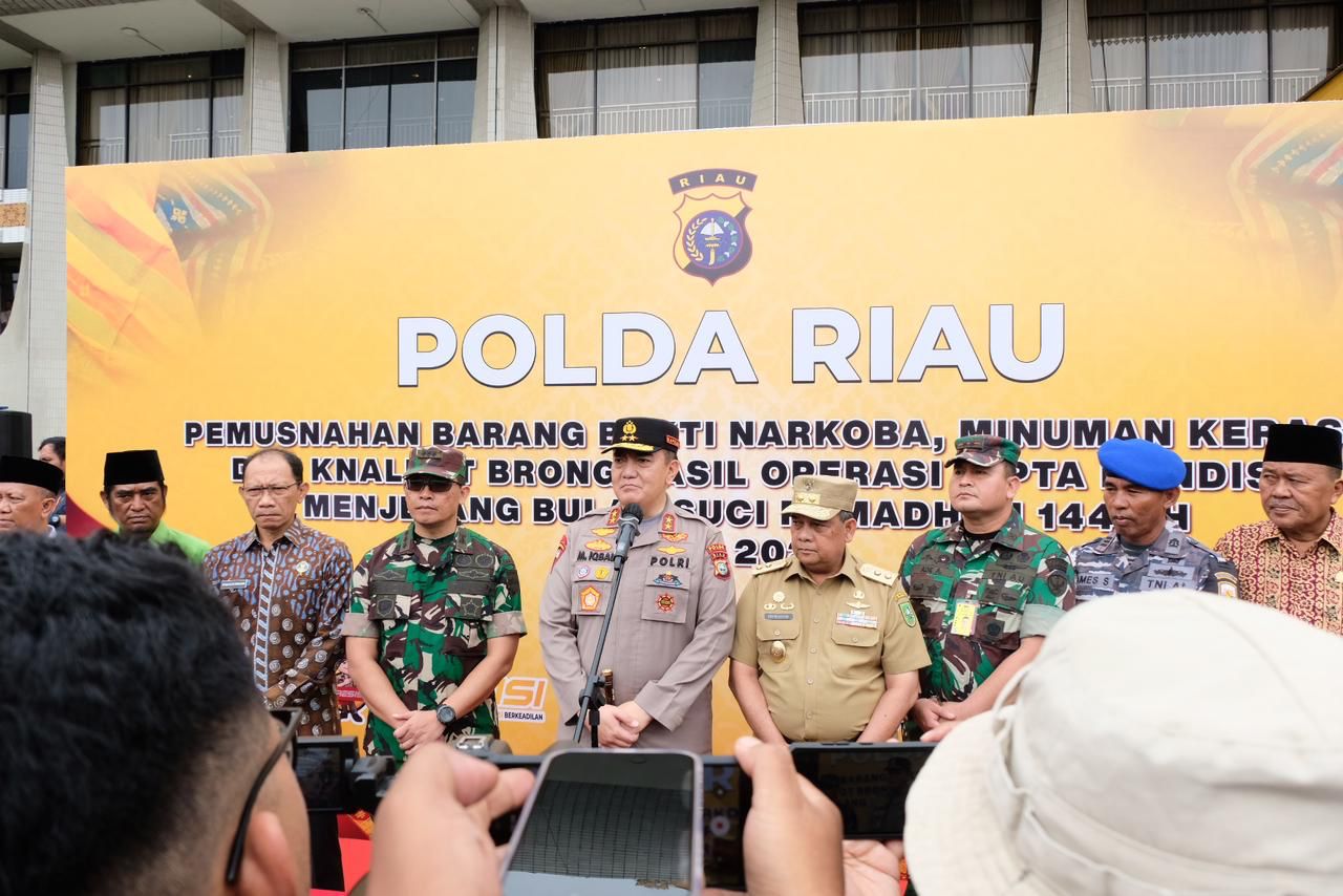 Kapolda Riau Irjen Pol Mohammad Iqbal merincikan, barang bukti yang dimusnahkan di antaranya narkotika jenis sabu seberat 83,27 Kg, pil ekstasi sebanyak 55.456, H-5 sebanyak 531 butir, 15.862 botol minuman beralkohol berbagai merek hingga ribuan knalpot brong.