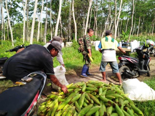 Babinsa Jatiroyom Koramil Bodeh Sersan dua Waluyo ketika bertemu Petani  Bidin (52 th)  rt 07/08 desa Jatiroyom di usai panen jagung mendapat informasi bahwa selama ini petani cukup kesulitan dalam membawa hasil pertanian dikarenakan akses jalan yang kurang baik.