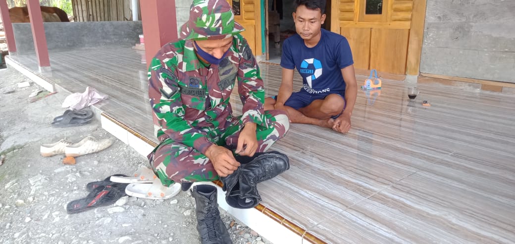 Bojonegoro – Disela-sela kegiatan TNI Manunggal Membangun Desa (TMMD) ke-110 anggota satgas Serda Samsuri berbaur bersama warga di Desa Ngrancang Kecamatan Tambakrejo Kabupaten Bojonegoro.