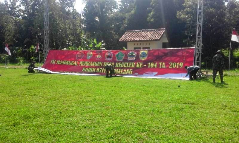 PEMALANG, neeshamter.com – Seperti saat awal pembukaan TMMD Reguler 104 Kodim 0711 Pemalang (26/2), dalam penutupan pembangunan di Desa Jatiroyom Kecamatan Bodeh ini, pemasangan steger dan banner raksasa atau baliho juga dilaksanakan TNI bersama masyarakat setempat. Selasa (26/3/2019).