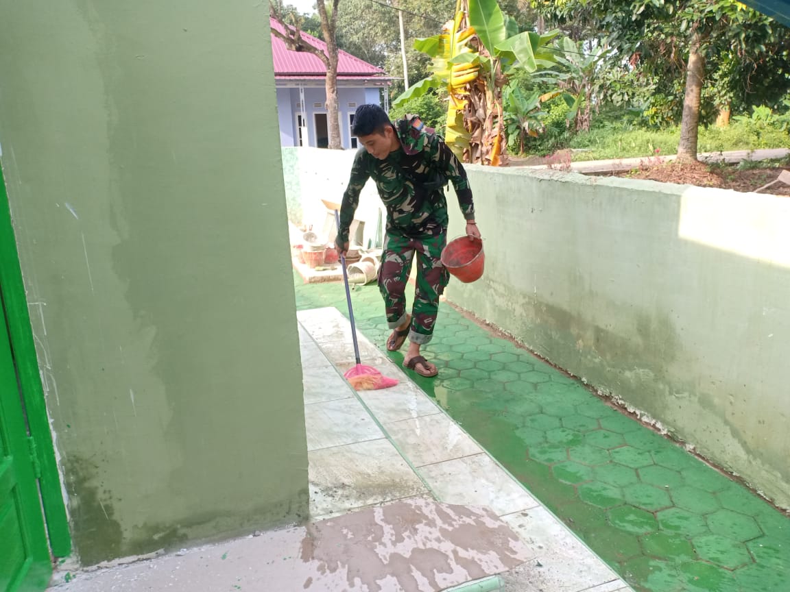 Palembang,newshanter.com – Jelas peresmian dan berakhirnya Program TMMD ke 110 Tahun 2021 Kodim 0418 Palembang,anggota Satgas TMMD membersihkan dan merapikan rehab masjid Nurul Iman, Selasa (30/3/2021).