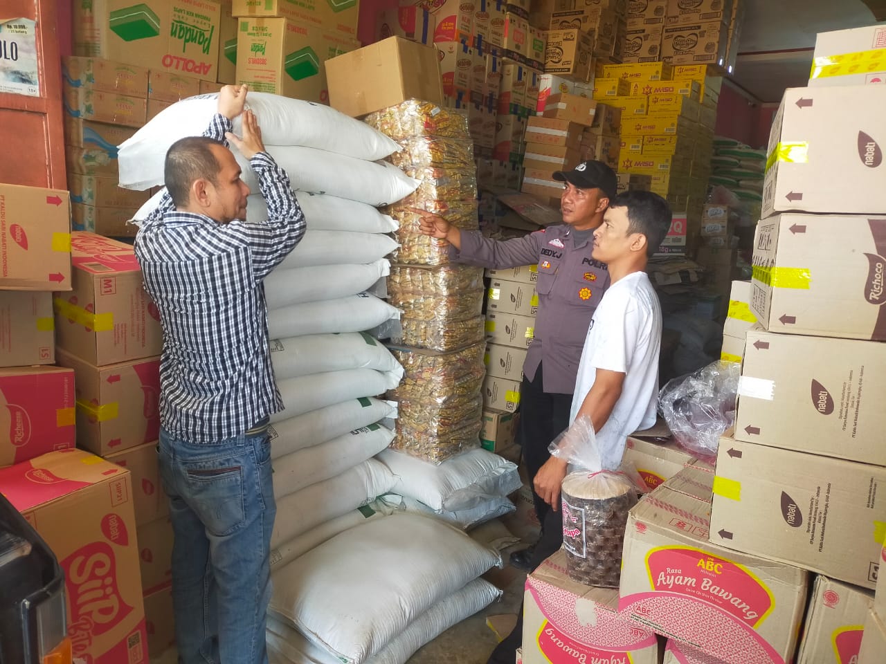 Kapolsek juga memberikan himbauan kepada para pengusaha dan pedagang, untuk tidak melakukan penimbunan stok. Karena menyebabkan kelangkaan dan tentunya berdampak kepada kenaikan harga. Sehingga bisa merugikan Masyarakat,” tutup Kapolsek.