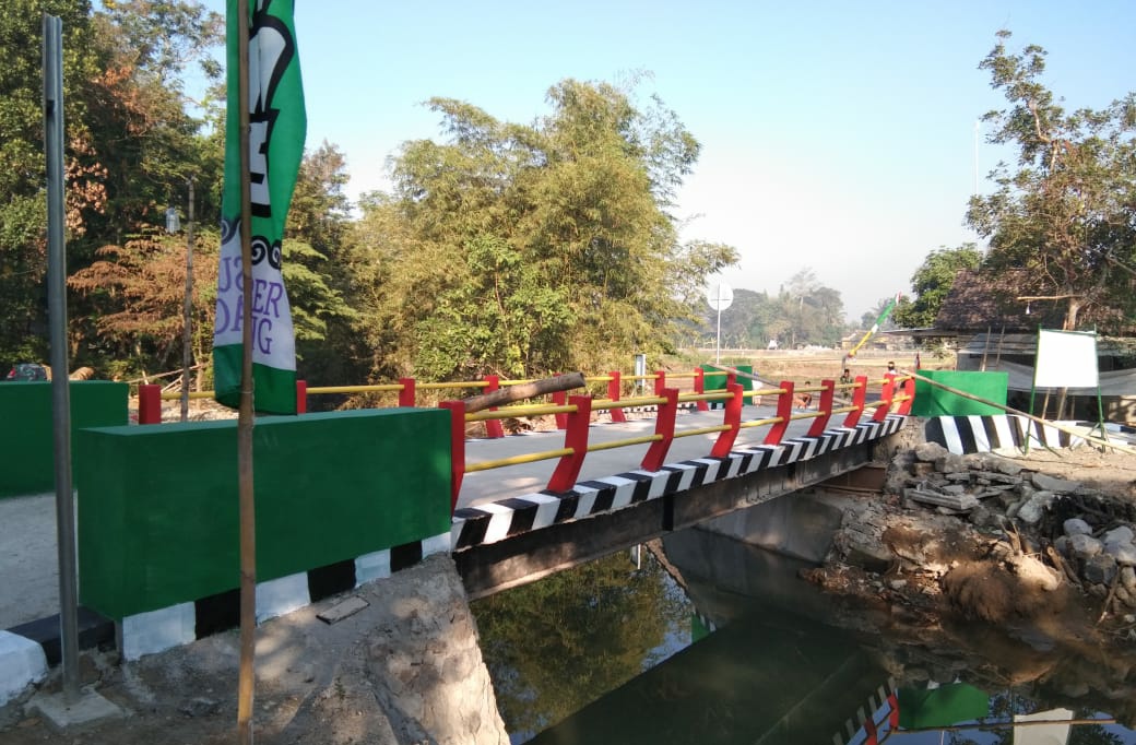 Bantul,NewsHanter – Satgas TMMD Reguler 108 Kodim 0729 Bantul berhasil membangun jembatan sepanjang 12 meter yang dibangun di atas Sungai Bulus di dekat lokasi persawahan.