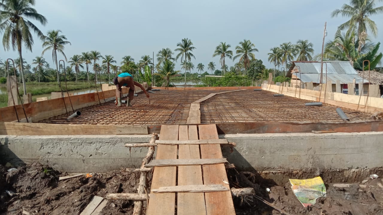 Hal ini terlihat sudah mulai persiapannya pengecoran jembatan yang dibangun sepanjang 12 meter dan lebar 6 meter ini.