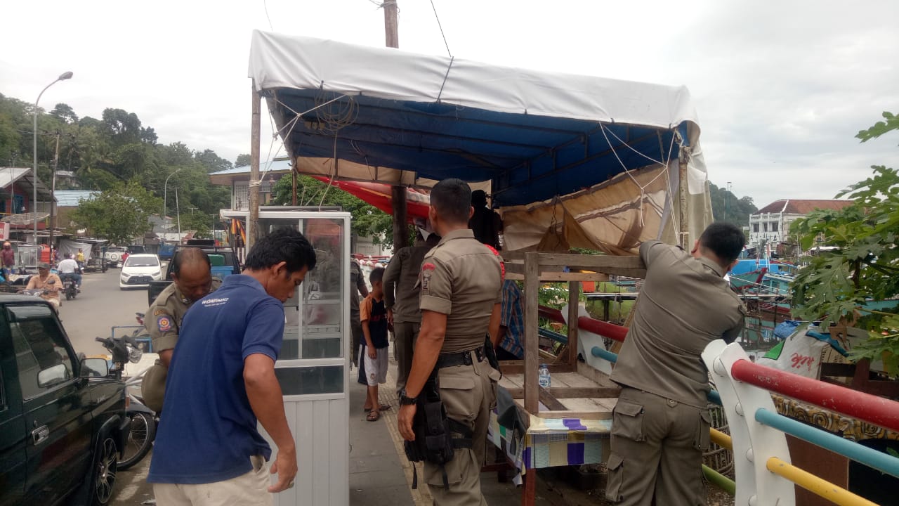 PADANG, NEWSHUNTER.COM – Satuan Polisi Pamong Praja (Satpol PP) Kota Padang menertibkan lapak-lapak Pedagang Kaki Lima (PKL) yang didirikan dan ditinggal di atas trotoar kawasan Batang Arau, Kota Padang, Sumatera Barat, Rabu (12/06).