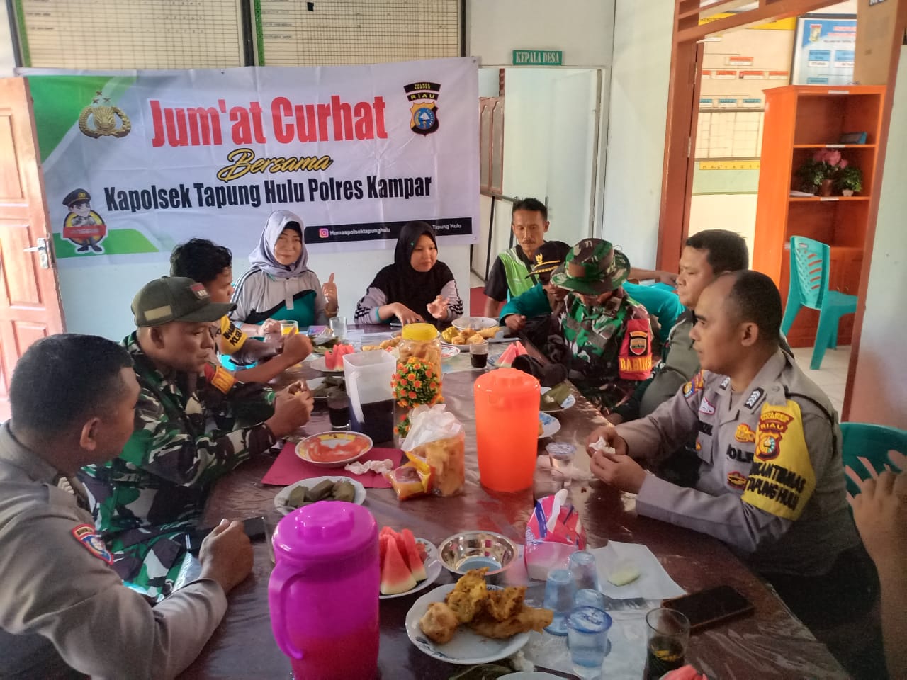 Tapung Hulu,newshanter.com – Untuk mempererat hubungan hubungan baik antara Polri dan masyarakat serta mendengarkan langsung keluhan masyarakat, Personil Polsek Tapung Hulu kembali melaksanakan kegiatan Jum’at Curhat dengan warga Desa Rimba Beringin Kec.Tapung Hulu Kab.Kampar, Jum’at 11/08/2023.