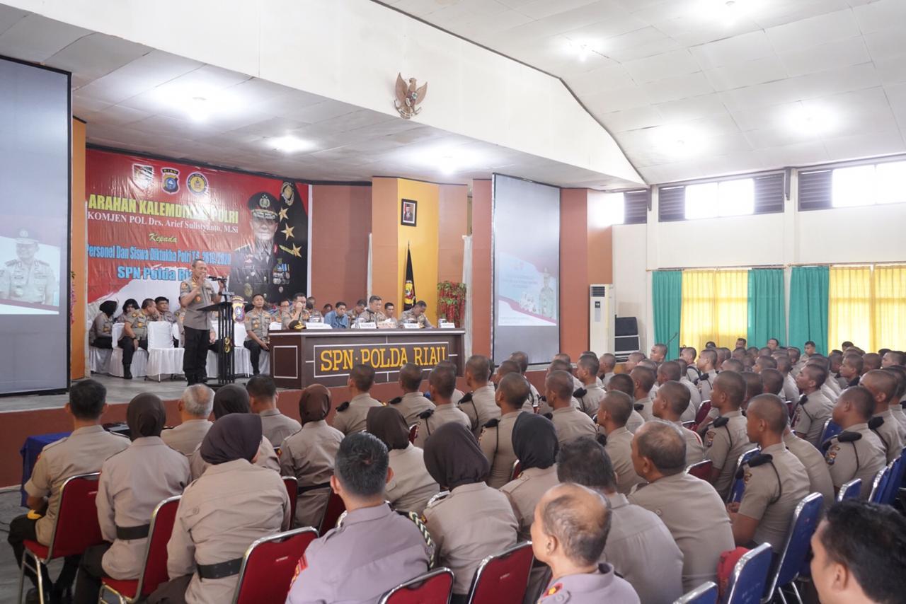 PEKANBARU,newshanter.com – Kalemdiklat Polri Komjen Pol Arief Sulistyanto memberikan arahan kepada personel dan 203 Siswa Diktukba Polri SPN Polda Riau pada Jumat pagi (28/2/2020).