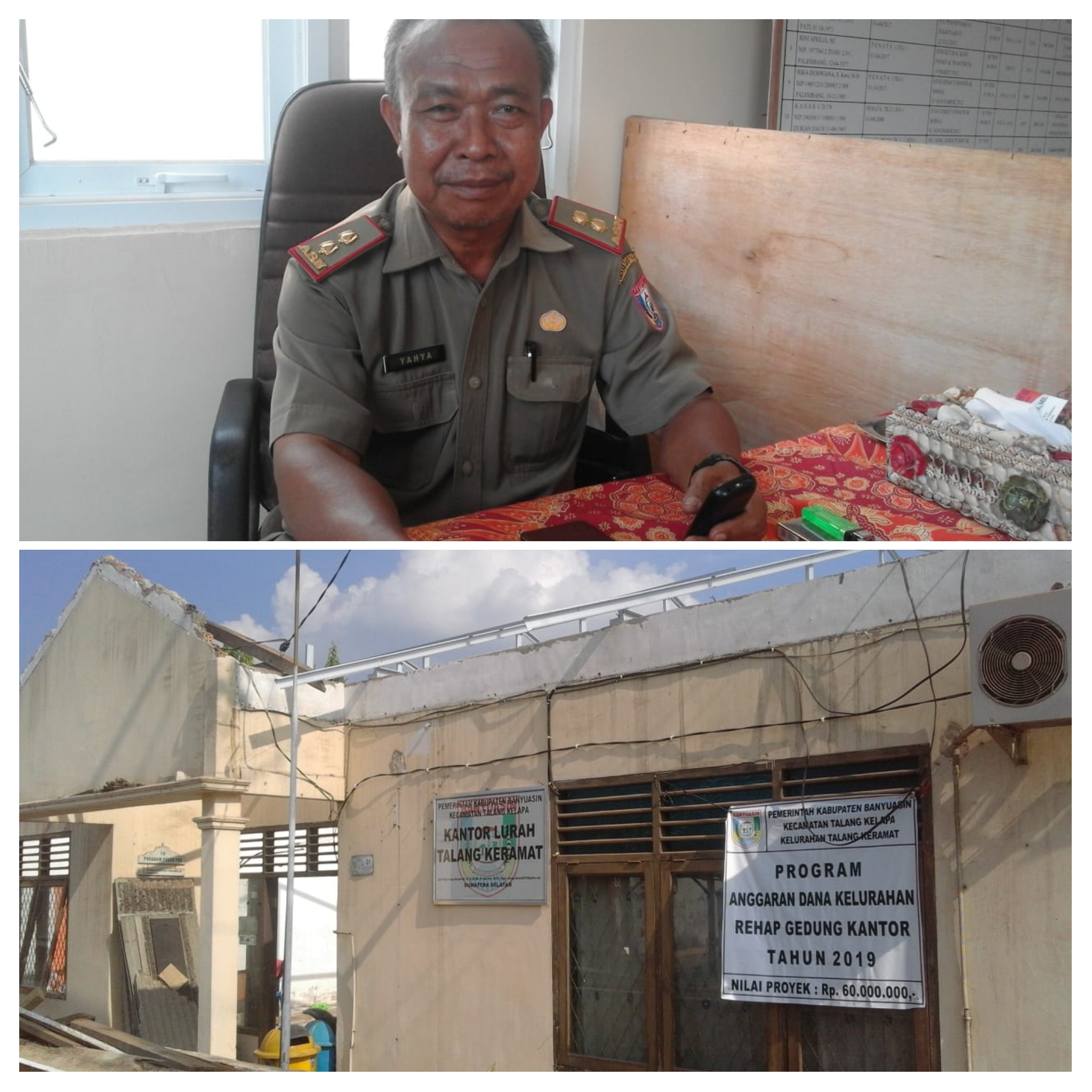 Yahya SH Lurah Talang Keramat mengatakan,” Bangunan yang sudah lama berdiri perlu dilakukan renofasi, agar lebih bagus dan nyaman sehingga bisa memberi pelayanan yang baik terhadap masyarakat, renofasi yang dilakukan untuk kantor lurah menggunakan anggaran APBD Kecamatan sebesar enam puluh juta rupiah, anggaran yang kami terima tahun ini kami gunakan untuk mengganti atap serta plafon kantor, karena bangunan yang sudah lama berdiri sudah sepantasnya dilakukan penggantian guna memberi kenyamanan kepada masyarakat yang berurusan di kantor lurah, kemudian bangunan kantor akan kami cat ulang agar kelihatan bagus dan indah sehingga tercipta suasana baru,” ungkapnya.