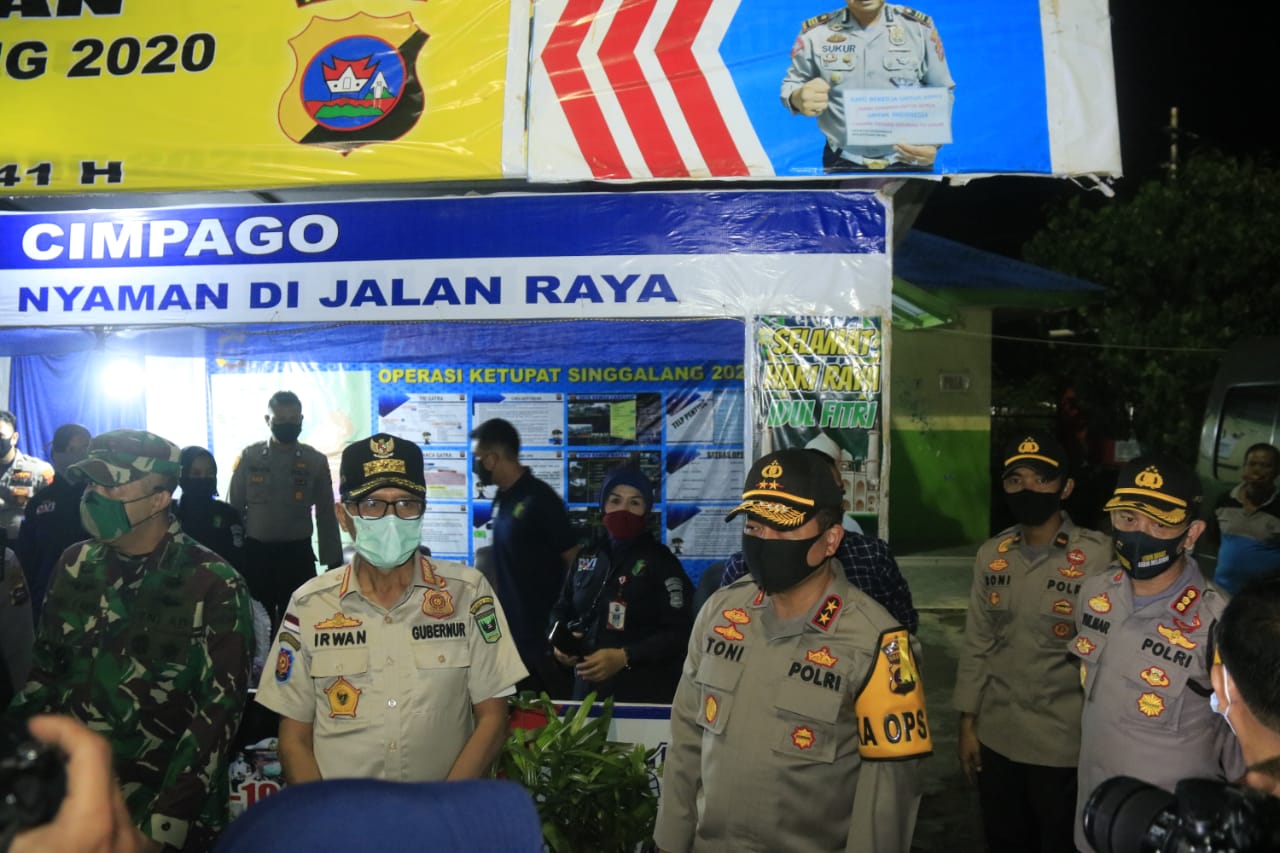 Padang, NewsHanter.com – Kapolda Sumbar Irjen Pol Drs. Toni Hermanto, MH bersama Gubernur Sumbar Irwan Prayitno dan Forkopimda Sumbar, tadi malam melakukan kunjungan Pos Pengamanan Operasi Ketupat Singgalang 2020.