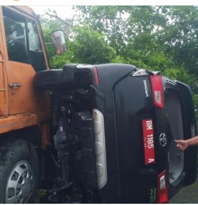 Foto kendaraan dimaksud yang beredar di media sosial, sebuah kendaraan dinas jenis Toyota Kijang Innova berplat merah BM-1185-A yang terjungkal dan sebuah truk Fuso warna oren, setelah diselidiki ternyata kedua kendaraan tersebut mengalami kecelakaan di wilayah kecamatan Pangkalan Koto Baru Kabupaten 50 Kota, Sumbar.