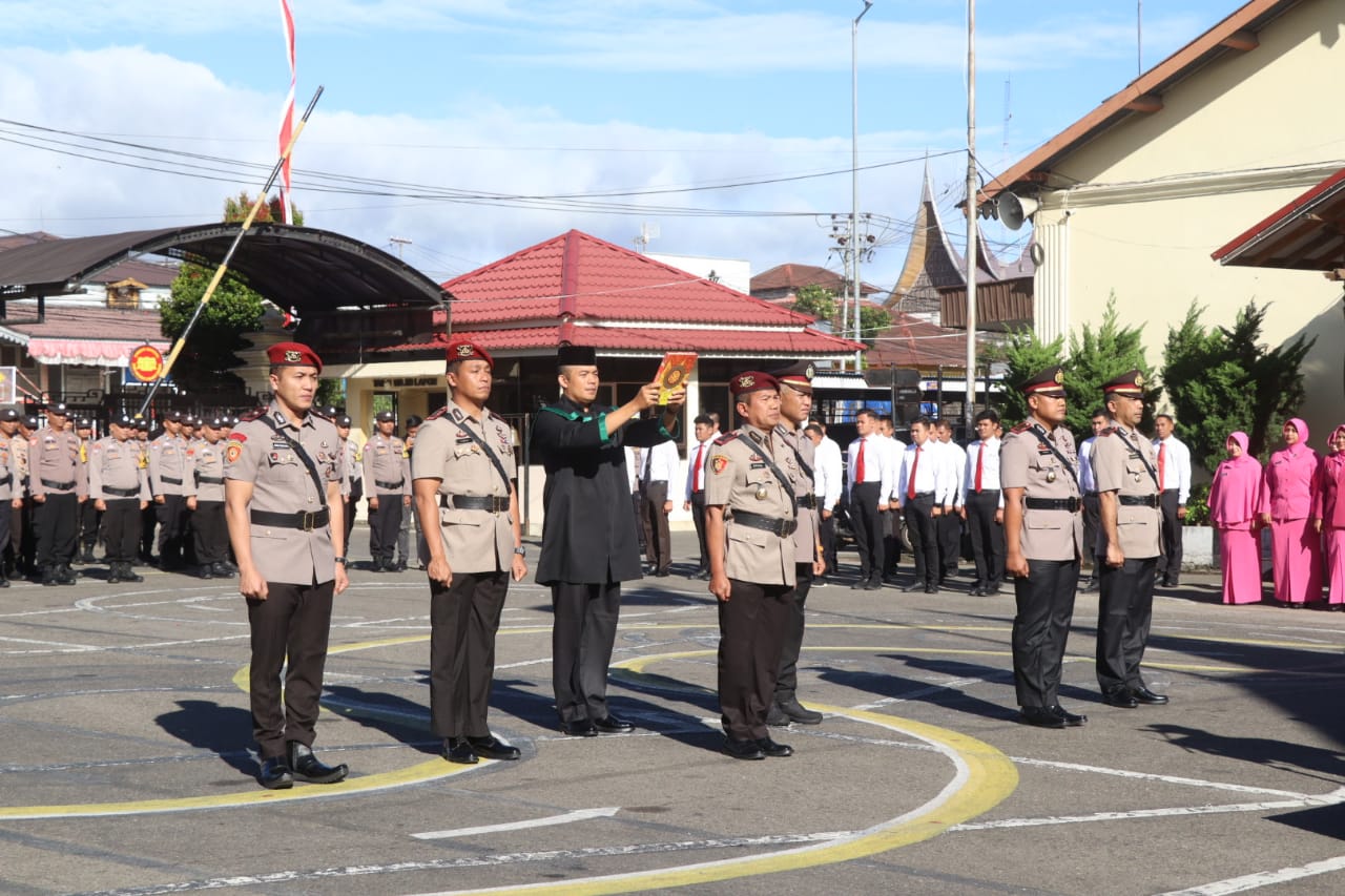 Upacara yang berlangsung khidmat tersebut dipimpin langsung oleh Kapolresta Bukittinggi, Kombes Pol Ruly Indra Wijayanto, S.I.K., M.Si., dan dilaksanakan di halaman Mapolresta Bukittinggi.