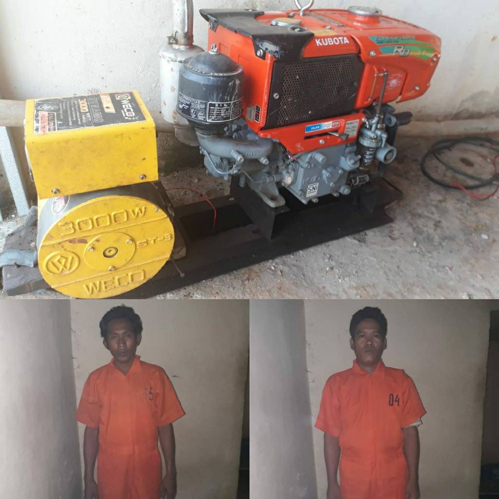 BANYUASIN. NEWSHANTER,Com– jajaran Polsek Air Kumbang berhasil menciduk 2 tersangka perampasan mesin genset
